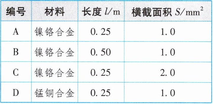 实验室提供了4根电阻丝,其规格、材料如下表所示: