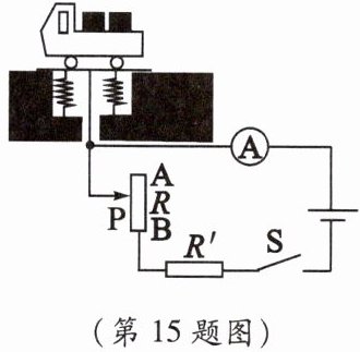 15. 如图所示是大型电子地磅的电路图。当称量重物时,在压力作用下滑片P向下端滑动,变阻器R接入电路的电阻