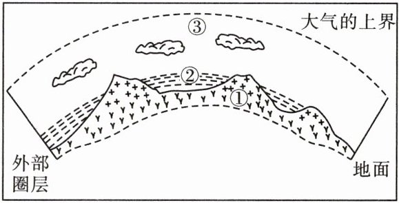 (1)①为岩石圈,②为水圈,③为大气圈。(2)生物圈占有③圈层(大气圈)的底部、②圈层(水圈)的全部和①圈层(岩石圈)的上部。