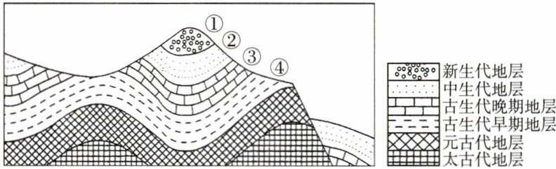 (1) 在图中数码①②③④所示地层中,有可能找到大量三叶虫化石的是