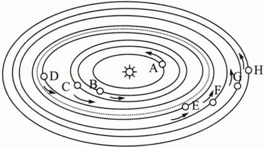 按距离太阳由近及远的顺序依次为:A 水星,B,C 地球,D 火星,E,F 土星,G 天王星,H。