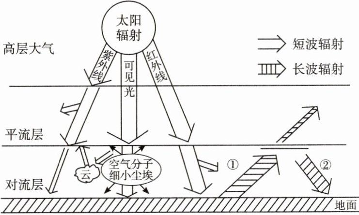 吸收。(2) 大气暖大地:左栏图中②为