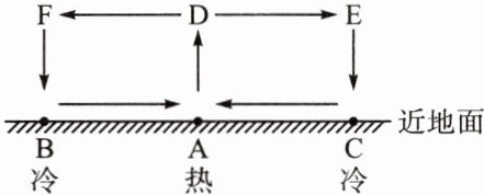 (1)冷热不均 (2)①低压区 高压区 ②高压区 低压区 ③高压区 低压区