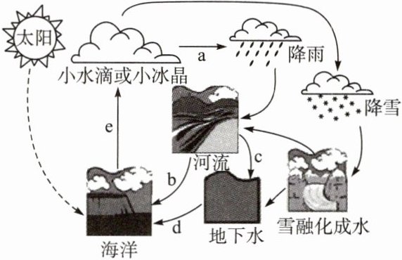 (1)图中 a、b、c、d、e 表示的水循环环节分别是(