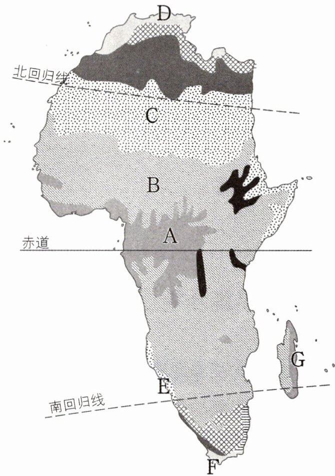 5. 读下面非洲植被类型分布图,完成下列各题。