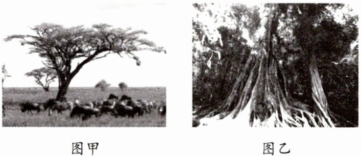 2. 图甲所示的植被类型分布面积最大的大洲为(