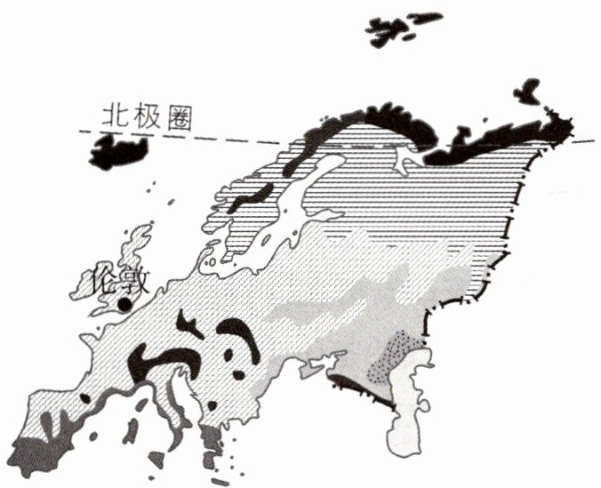 读下面欧洲部分地区植被类型分布图,完成3~4题。