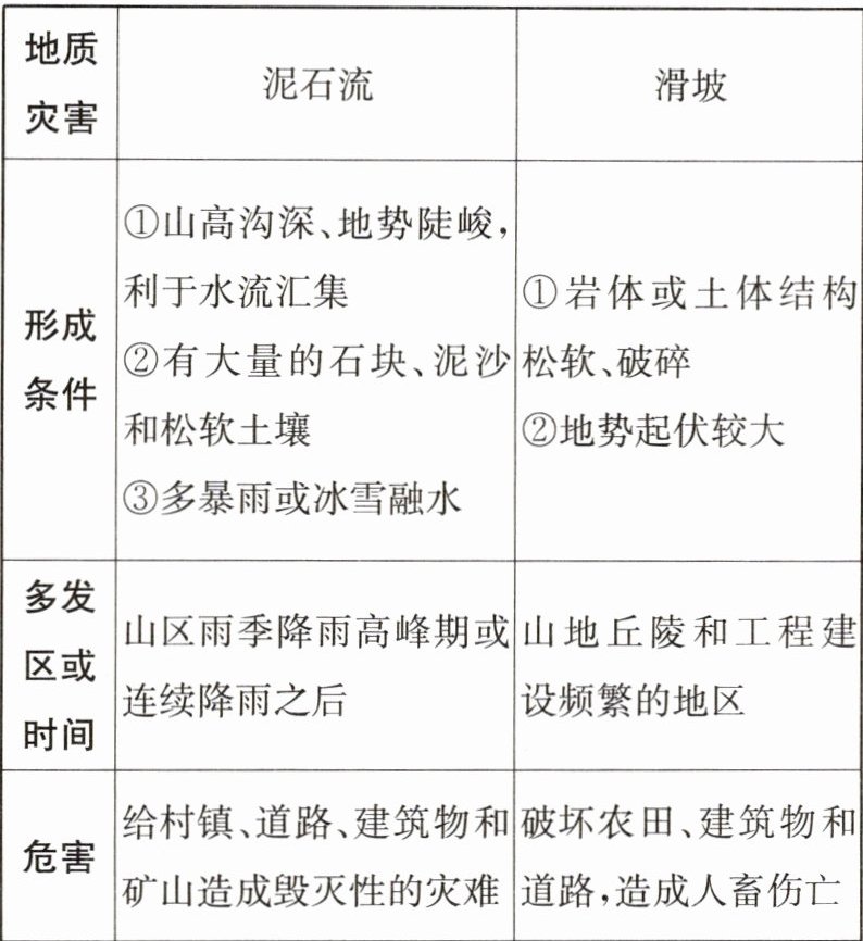 | 危害 | 给村镇、道路、建筑物和矿山造成毁灭性的灾难 | 破坏农田、建筑物和道路,造成人畜伤亡 |