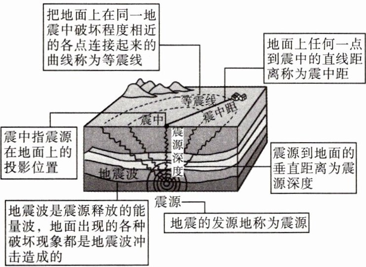 大部分地震的发生与地质构造有关。各种地震中,构造地震影响最大,世界上发生的地震大部分属于构造地震,其发生过程如下图所示。