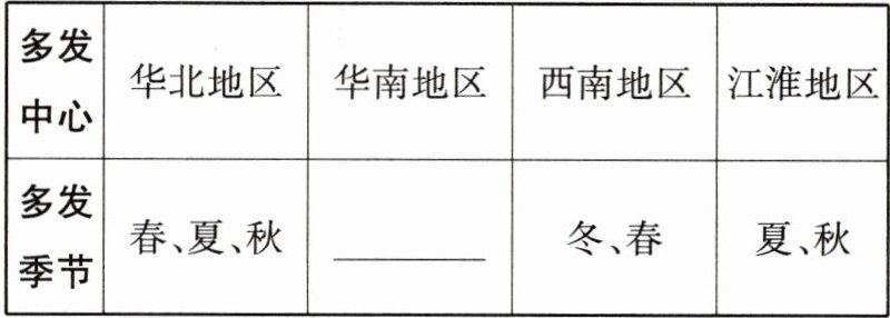 | 多发中心 | 华北地区 | 华南地区 | 西南地区 | 江淮地区 |