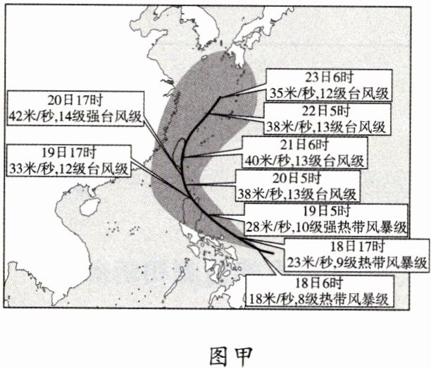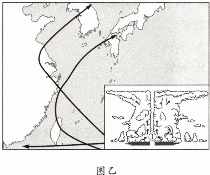 8. 下面图甲为某台风的移动路径示意图,图乙为我国台风路径及台风剖面图。读图,完成下列各题。