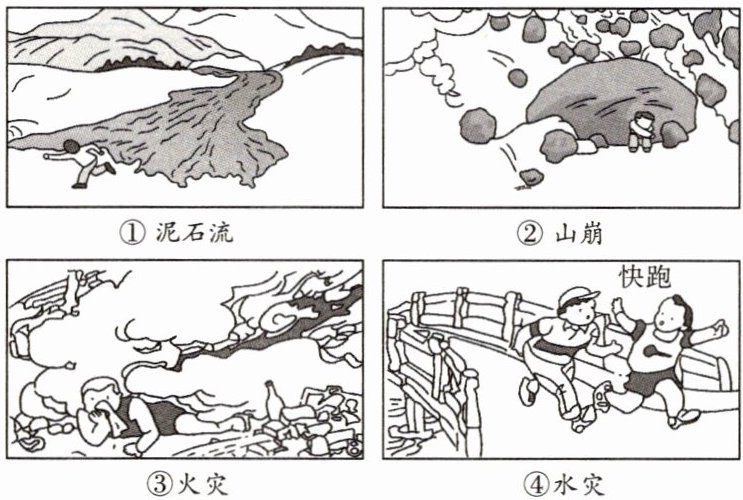 (1)①不正确。发生泥石流时,顺着泥石流的方向逃跑会被掩埋。