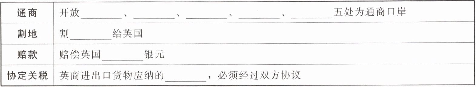 (1)签订:1842年8月,清政府被迫与英国签订了中国近代史上第一个丧权辱国的不平等条约——中英《______》。