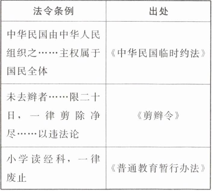 3. 下表是中华民国临时政府颁布的一些法令条例,据此可推断中华民国临时政府( )。