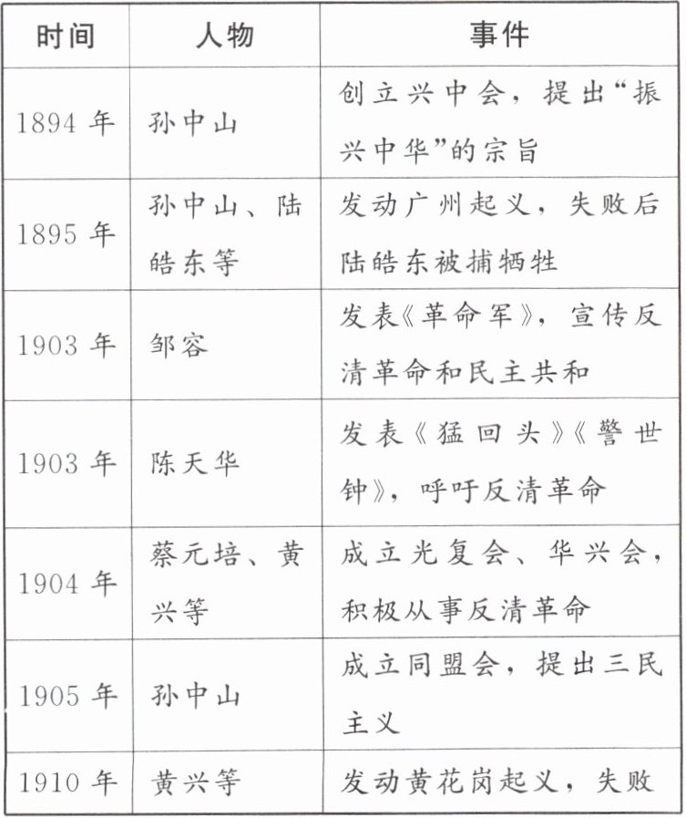 |1904 年|蔡元培、黄兴等|成立光复会、华兴会,积极从事反清革命|