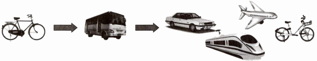 2. 下图是初中生小明对当地市民出行方式变化的调查。图中展示了过去和现在不同的出行方式,其间的变化反映出(