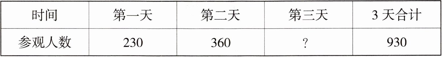 (1)分量=总量-分量-分量(2)930-230-360=340(人)(3)是第一天人数和第二天人数的总量,也是3天总人数的分量。