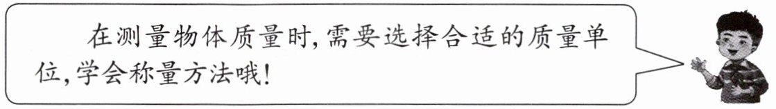 - 测量物体质量时常用的质量单位有哪些?你知道曹冲称象的原理吗?与同伴说一说。