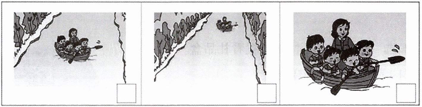 5. 佳佳站在桥上,看见一只小船从远处划来。按时间顺序给下面的 3 幅图编号。