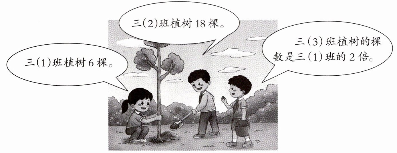 (1) 三(2)班植树棵数是三(1)班的几倍?