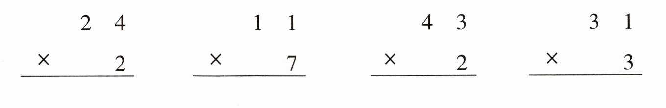 用竖式计算两位数乘一位数(不进位)的乘法步骤如下: