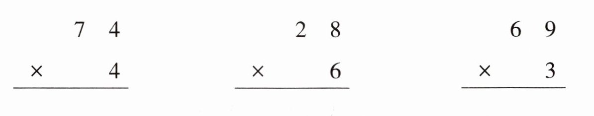 2. 用一位数依次乘两位数每一位上的数,个位相乘满几十就向十位进几。