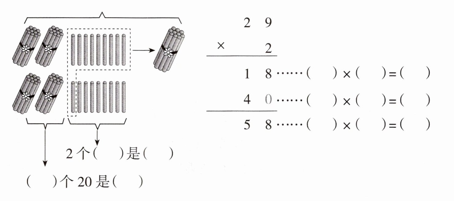 2. 根据小棒演示,完成计算过程。