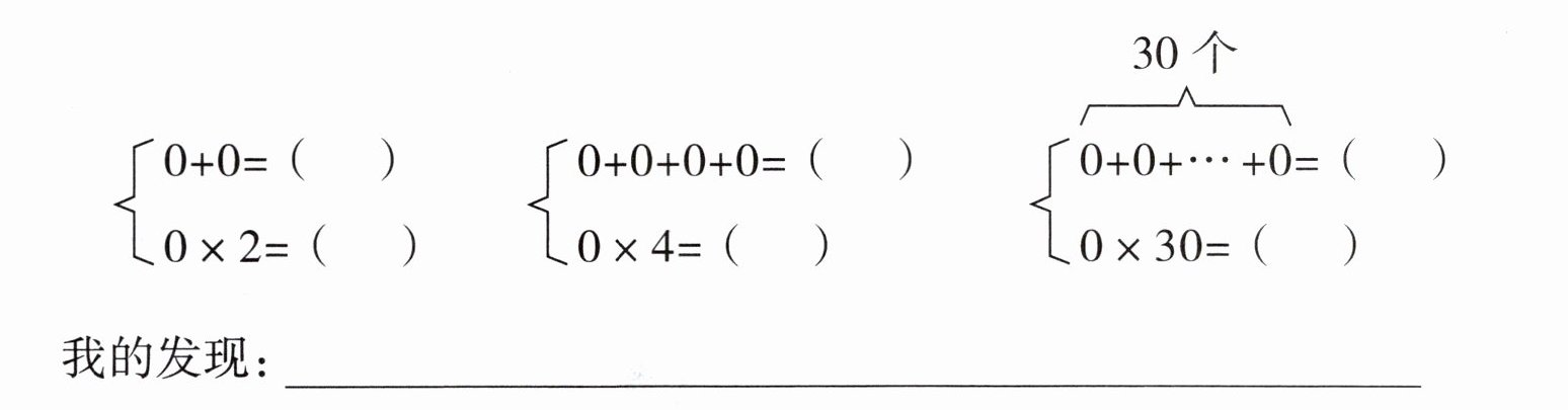 0 0 0 0 0 0 发现:0 乘任何数都得 0。
