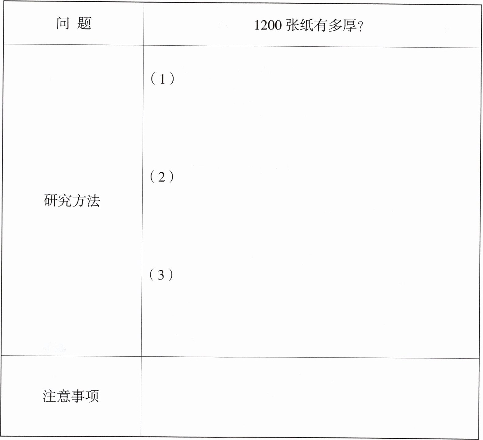 - 1200 张纸摞起来有多厚?与同伴说一说估测思路。