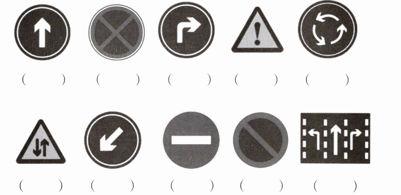 1. 下面的交通标识哪一些是轴对称图形?在下面的括号里打“√”。