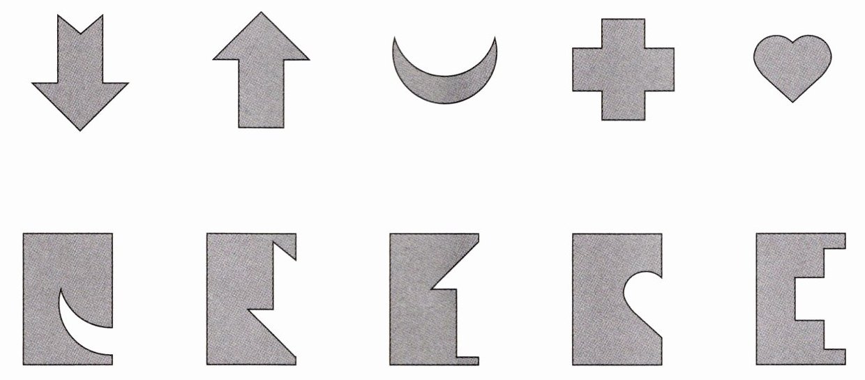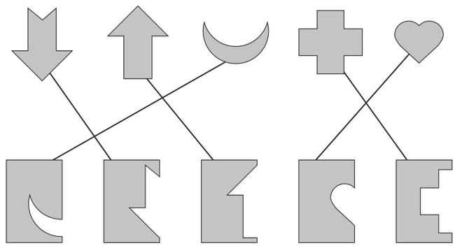 3. 下面的图案各是从哪张纸上剪下来的?连一连。