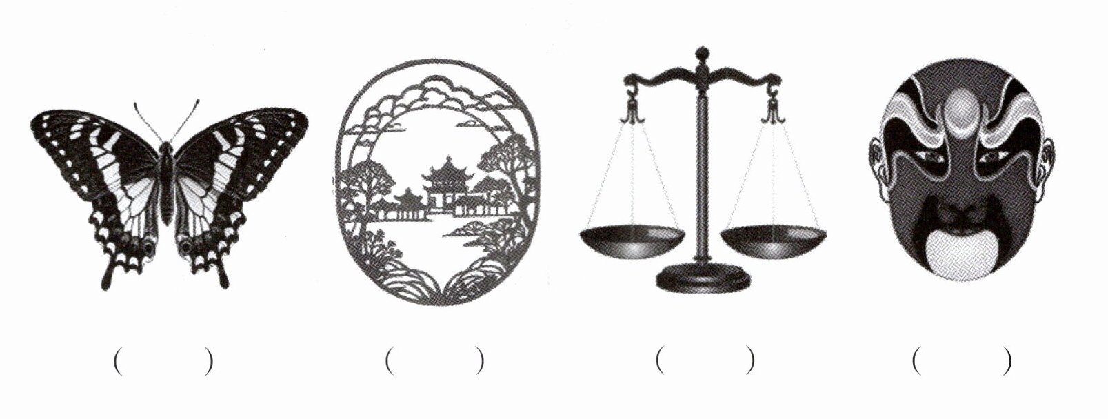 1. 下面哪些图案是对称的?在对称的图案下面打“√”。