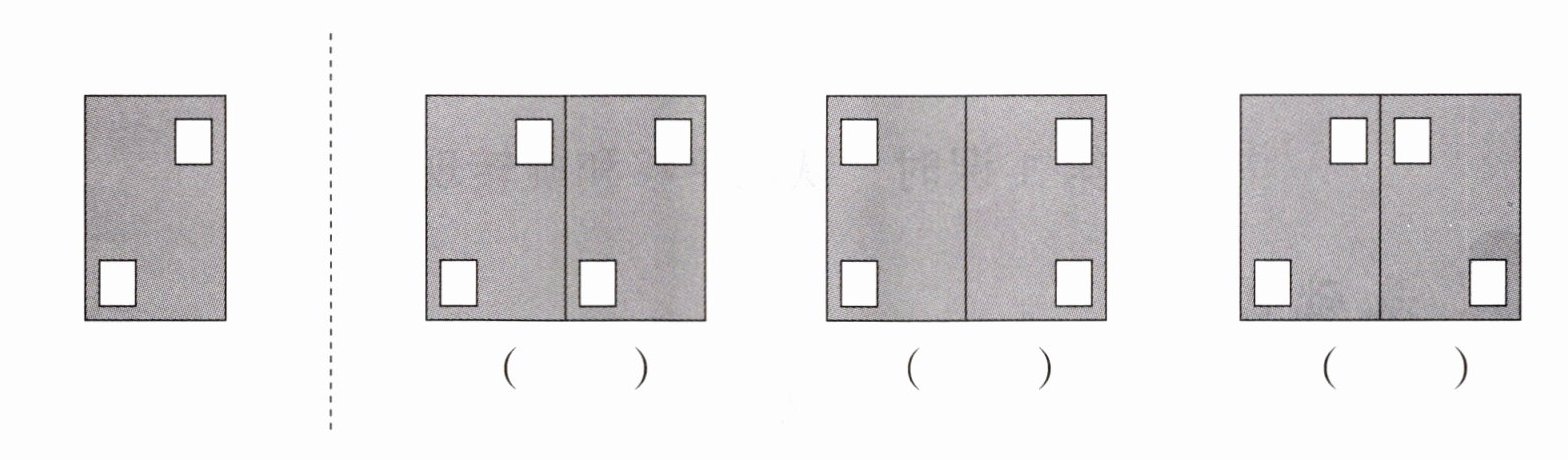 3. 在对折好的纸上剪了两个正方形,打开后会是哪一个?(在正确答案下面的括号里打“√”。)