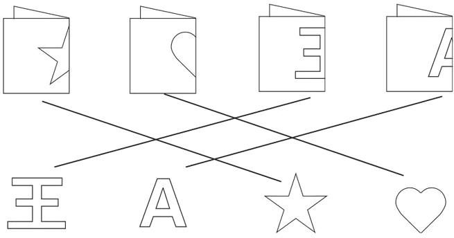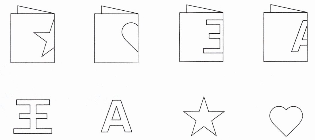 3. 下面的图案各是从哪张纸上剪下来的?连一连。