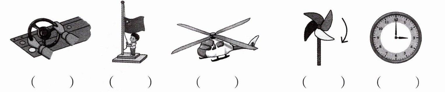 2. 下面物体的运动是平移现象的在括号里画“△”,是旋转现象的在括号里画“○”。