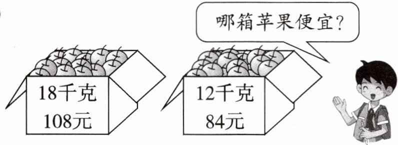 108÷18=6(元) 84÷12=7(元) 6<7 答:第1箱苹果便宜。