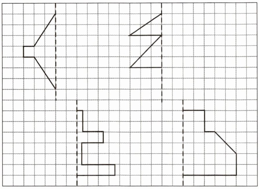 3. 画出下面每个图形的另一半,使它们成为轴对称图形。