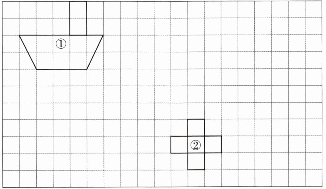(2) 将图②的三个(或四个,根据图形实际顶点数)顶点分别向左平移7格,再向上平移2格,然后依次连接平移后的顶点,得到平移后的图形。