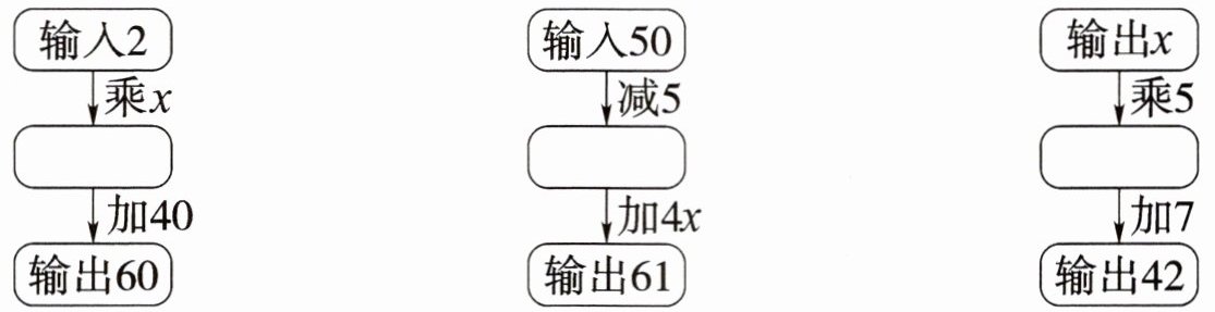 2x+40=60 解:x=10 50-5+4x=61 解:x=4 5x+7=42 解:x=7