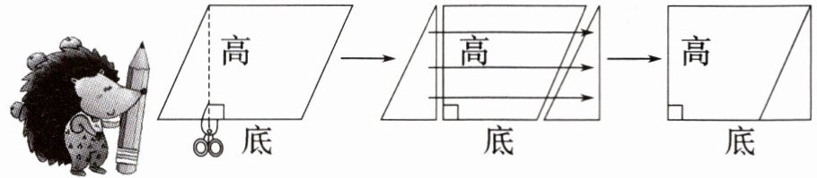 1. 沿平行四边形的一条高剪下一个直角三角形,平移后与剩余部分拼成一个长方形。