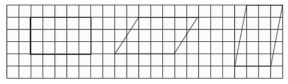 2. 在方格纸上画两个形状不同的平行四边形,使它们的面积都与图中长方形的面积相等。