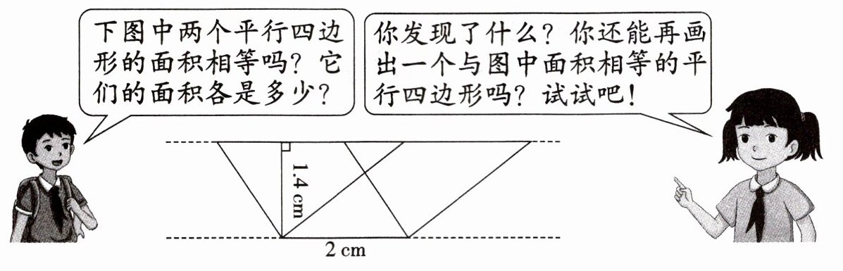1.4×2=2.8(cm²) 等底等高的平行四边形面积相等。