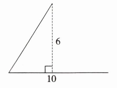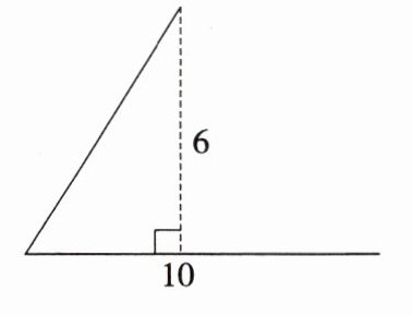(1) 画一个底为10,高为6的三角形(图左已画好底和高的位置,将虚线高实线化并连接顶点与底边两端点形成完整三角形即可 );