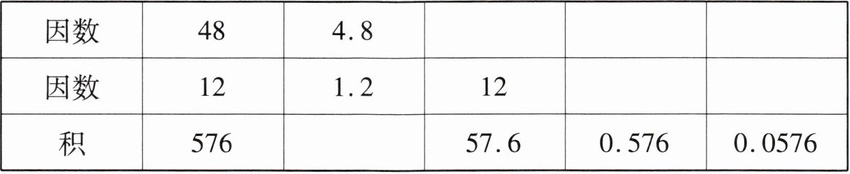 5.76 4.8 0.48 1.2 0.48 0.12(答案不唯一。)