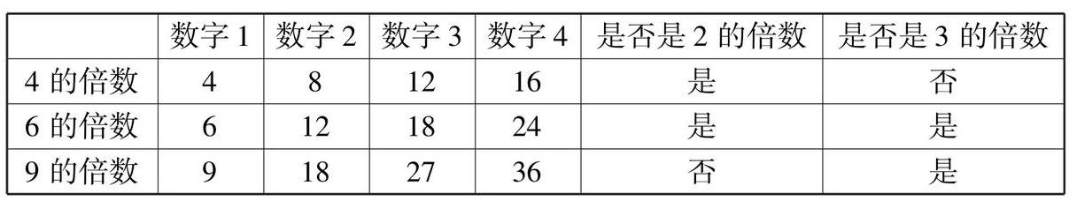 如果一个数是4的倍数,那么它一定是2的倍数。如果一个数是6的倍数,那么它一定是2,3的倍数。如果一个数是9的倍数,那么它一定是3的倍数。(答案不唯一。)
