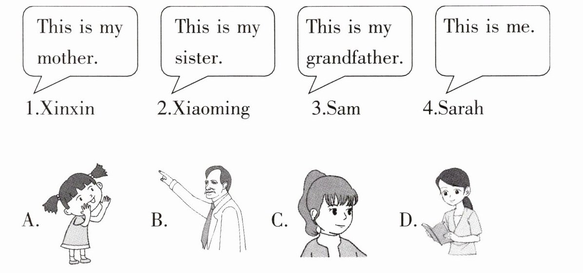 一、Look,read and match. 欣欣和她的朋友们带来了一些照片,请根据他们的描述找出他们的照片并连线。