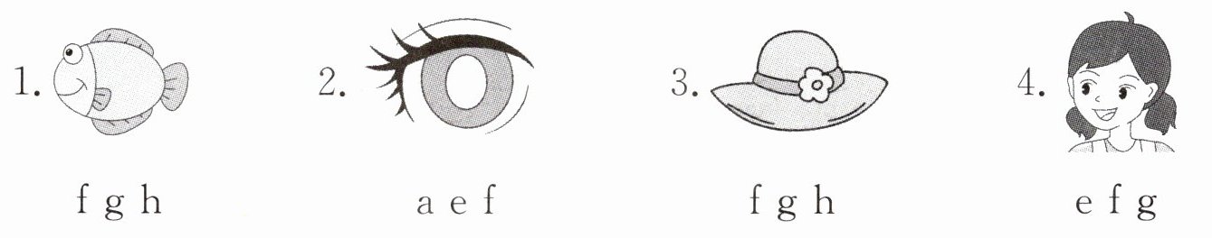 三、Look, read and fill. 看图,选择正确的字母补全单词,并读一读歌谣。