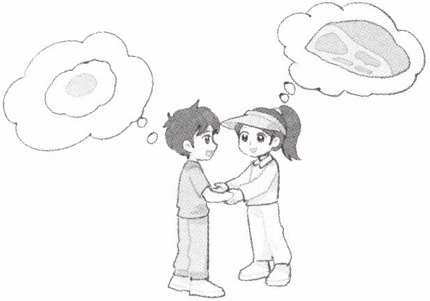We share food and play together.