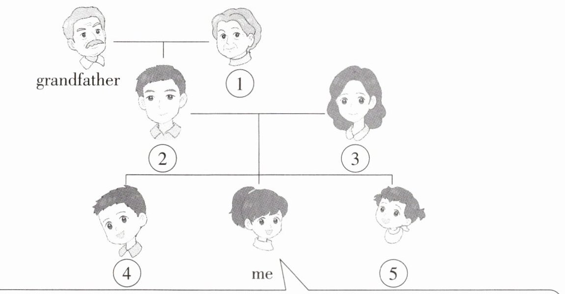 Hi, I’m Kitty. This is my family. There are seven people in my family. They are my grandfather, 1.______, 2.______, 3.______, 4.______, 5.______ and me. I love my family.