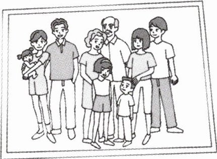 三、Read and choose. 下面是小兰的全家福,她有一个大家庭。请根据她的全家福帮她将介绍补充完整。